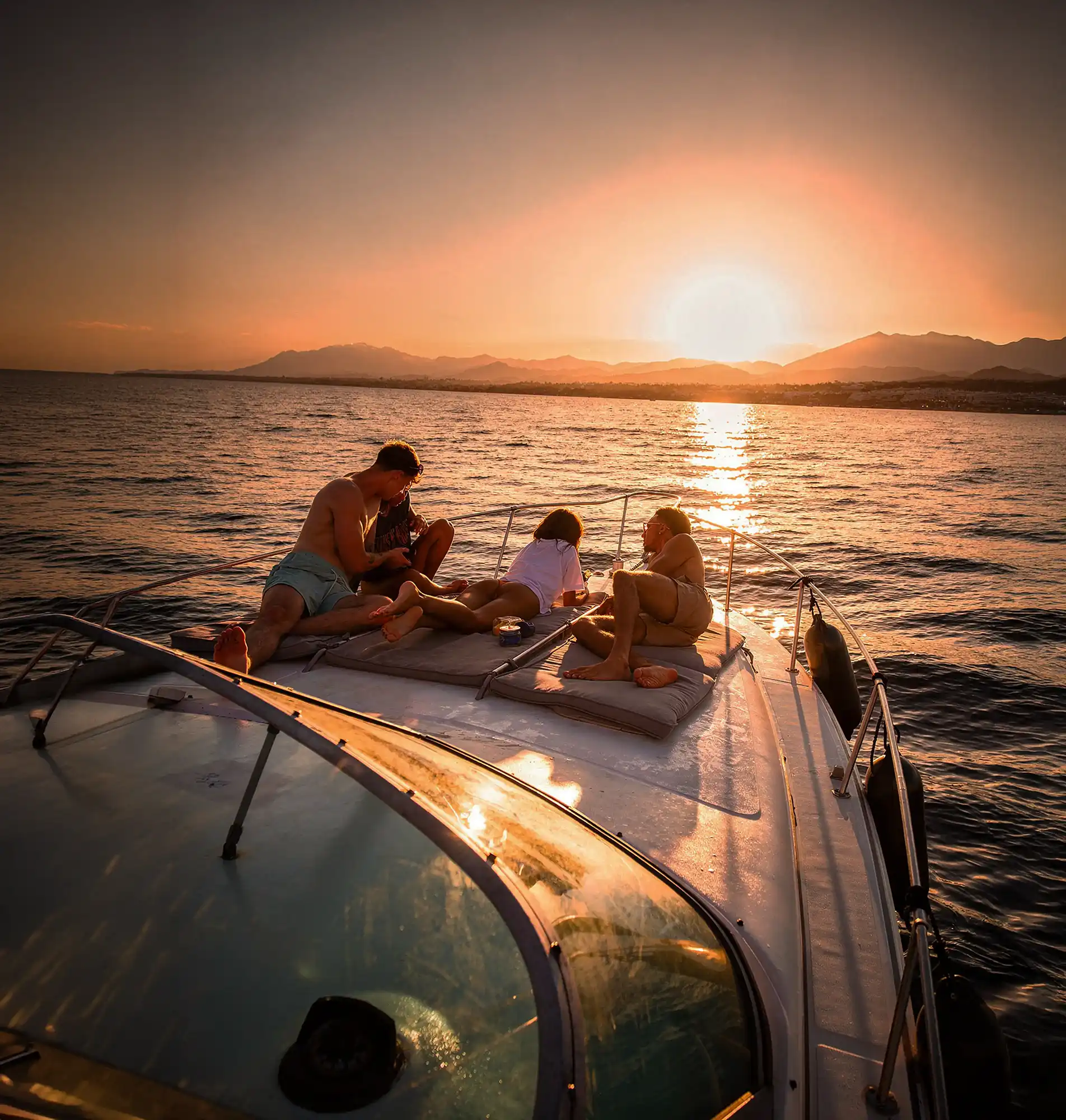 Las excursiones de tarde terminan con una puesta de sol sobre el mar. Es el plan perfecto para parejas o para cerrar un día de playa. Fondea, abre una cerveza y mira cómo se esconde el sol.